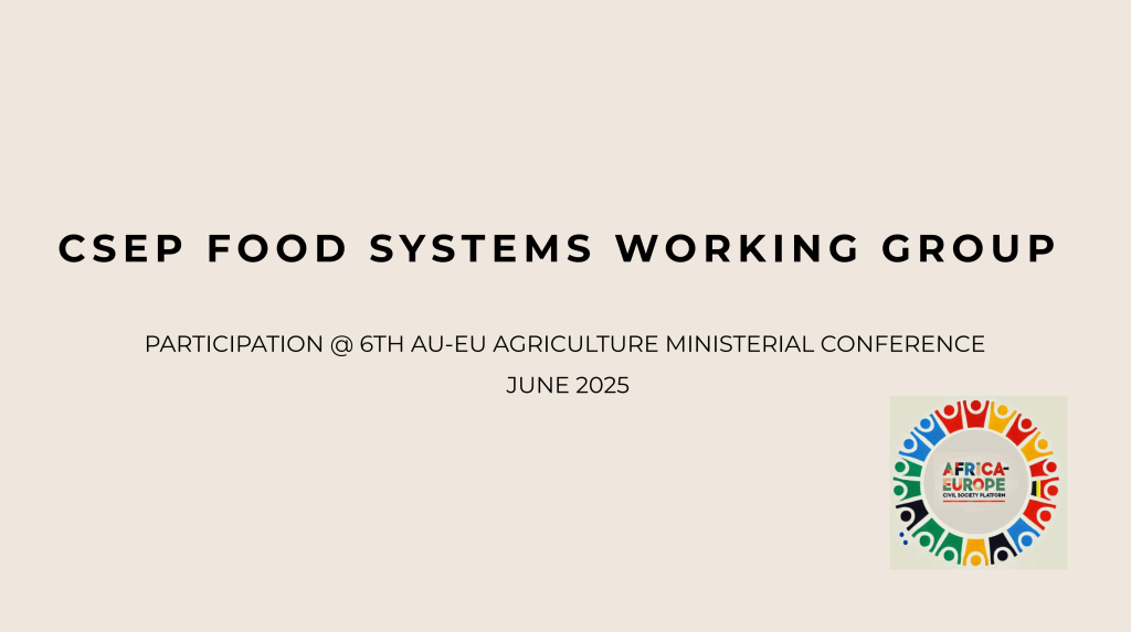 The Civil Society Engagement Platform’s (CSEP) Food Systems Working Group participated in discussions on just, sustainable, and resilient agri-food systems at the 6th African Union (AU) – European Union (EU) Joint Agriculture Ministerial Conference.