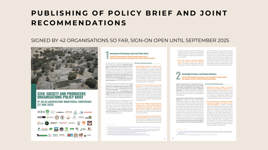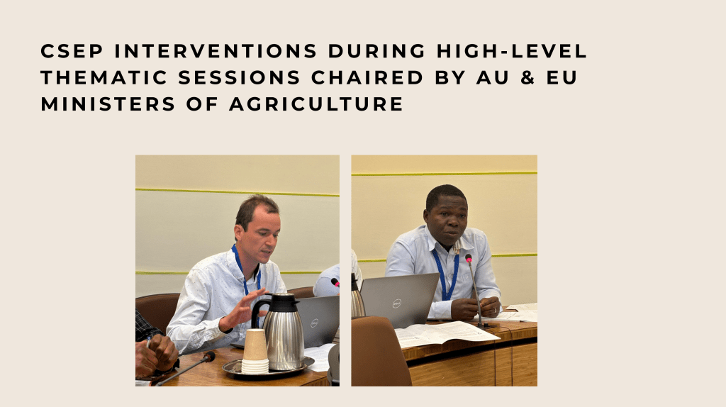 Le groupe de travail sur les systèmes alimentaires de la Plateforme d’engagement de la société civile (CSEP) a participé à des discussions sur des systèmes agroalimentaires justes, durables et résilients lors de la 6e Conférence ministérielle conjointe de l’agriculture Union africaine (UA) et Union européenne (UE).