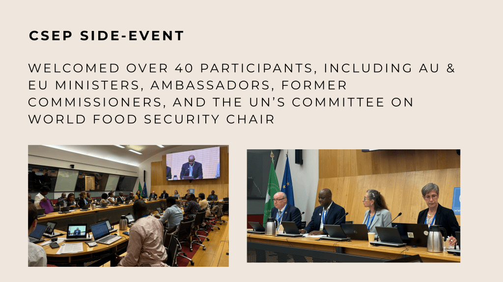 The CSEP engaged in several bilateral conversations with AU and EU ministers and commission staff, and national farmer representatives, to elaborate further on its policy brief and recommendations, published in light of the Ministerial Conference.